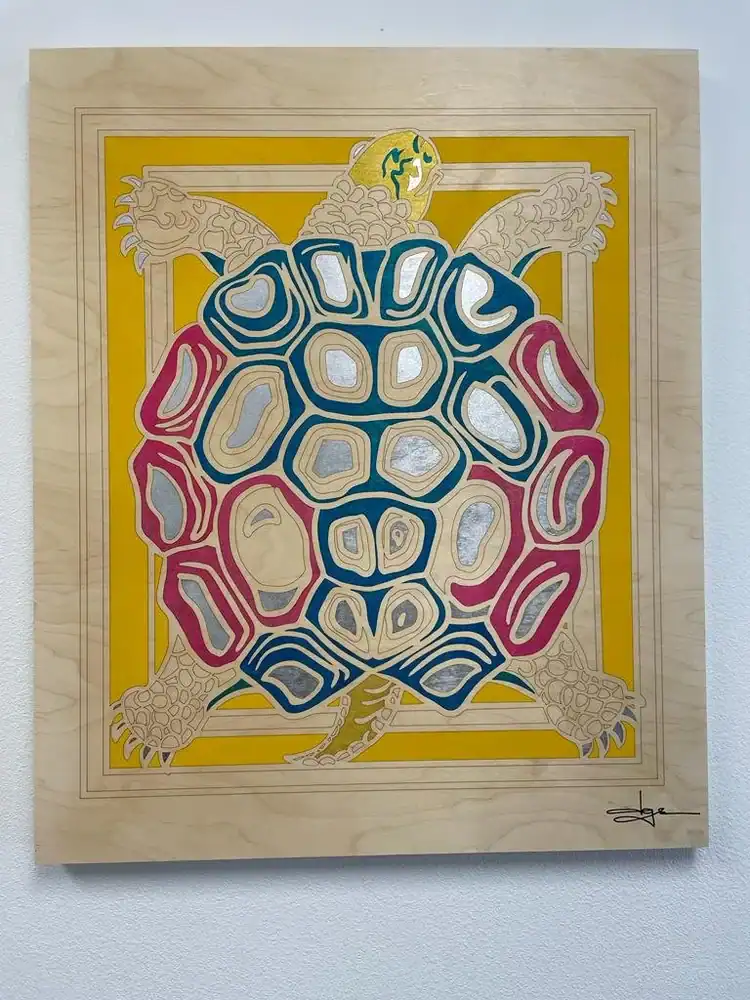 Smalling’s work often features animals, plants, and people from Native American tribes, portrayed not as symbols of the past, but as they exist in contemporary life. His art bridges tradition and modern expression, honoring cultural roots while reflecting the present. Each piece carries a sense of flow and resilience; an unbroken line that mirrors the endurance of culture itself.